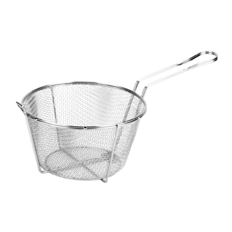 The CAC China FBR8-011 Fry Basket is a versatile tool with a diameter of 11-1/2 inches and a height of 5-7/8 inches, designed to meet the demands of various culinary settings. Its round shape and 1/8-inch mesh construction make it ideal for ensuring even frying and draining, catering to the needs of professional kitchens and food service operations. Made from wire and nickel-plated, this fry basket offers durability and resistance to corrosion, enhancing its longevity in busy environments. Packed by 20 pieces per case, it provides an efficient solution for bulk purchasing and stocking needs. The CAC China FBR8-011 Fry Basket is particularly valuable in settings such as restaurants, catering services, and fast-food outlets, where rapid, consistent frying is essential. Its design ensures that food items are cooked evenly and drained effectively, maintaining quality and taste. The nickel-plated finish adds an extra layer of resilience, allowing it to withstand frequent use and high temperatures. This fry basket stands out as a reliable choice for chefs and culinary professionals seeking quality and efficiency in their kitchen tools.
