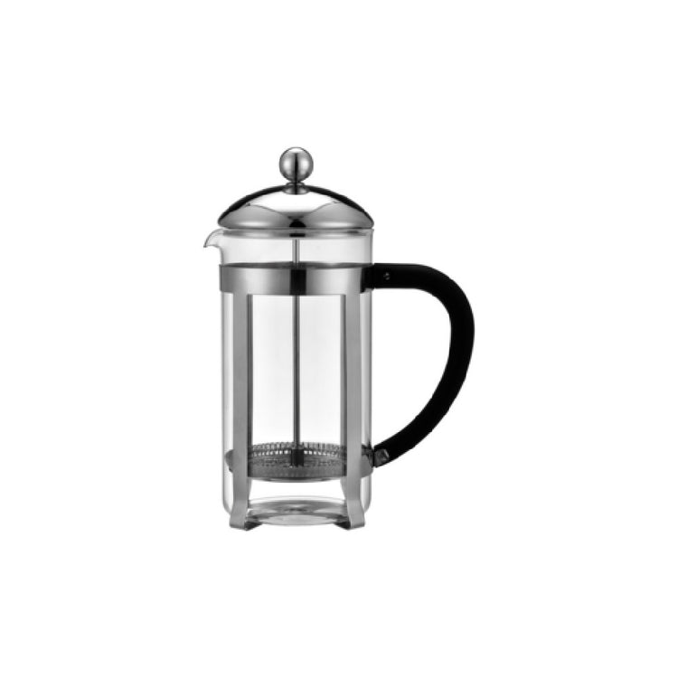 The CAC China FCPS-33 French Press Coffee Maker 33 Oz. Soft Touch Black Handle is a meticulously crafted coffee-making tool designed for coffee enthusiasts and professional settings alike. With a 33 oz. capacity, this French press is perfect for brewing multiple cups at once, catering to both personal and small group settings. The soft touch black handle provides a comfortable and secure grip, enhancing the user experience. Constructed with a 304 stainless steel plug and filter, it ensures durability and a superior filtering process, delivering a clean and rich coffee flavor. The borosilicate glass body offers high thermal resistance, making it both robust and aesthetically pleasing. This combination of materials underscores the product's commitment to quality and functionality, making it a versatile addition to any kitchen or café. Packed by 12 each per case, it is ideal for businesses looking to stock high-quality coffee makers in bulk. The CAC China FCPS-33 French Press Coffee Maker stands out in the market due to its thoughtful design, combining practical features with an elegant appearance, serving both domestic users and professional baristas with efficiency and style.