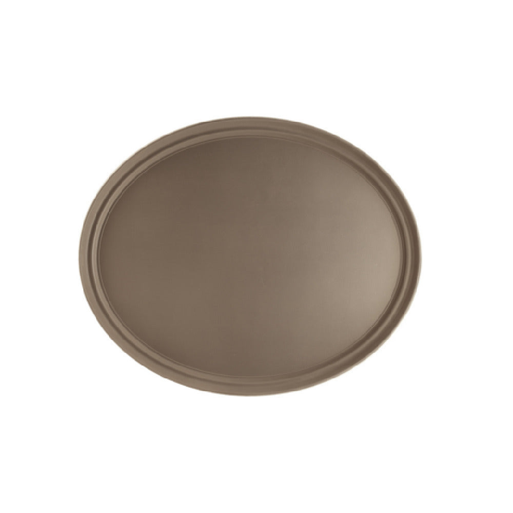 The CAC China FGTO-2722BN Tray is a sizable 27-inch by 22-inch oval tray designed with precision to meet the diverse needs of various segments in the foodservice industry. This tray is crafted from durable fiberglass, ensuring longevity and robustness in high-traffic environments. Its non-slip surface provides an added layer of safety by reducing the risk of spills, making it particularly useful in bustling restaurant settings. The tray's stain and odor-resistant properties maintain its pristine appearance and hygiene standards over time, which is crucial for establishments aiming to uphold a professional image. This brown-colored tray is NSF certified, emphasizing its compliance with strict public health and safety guidelines, reassuring users of its quality and reliability. Packed six per case, the CAC China FGTO-2722BN Tray is an ideal choice for restaurants, catering services, and banquet halls seeking a dependable, easy-to-maintain serving solution that efficiently caters to large-scale service demands.
