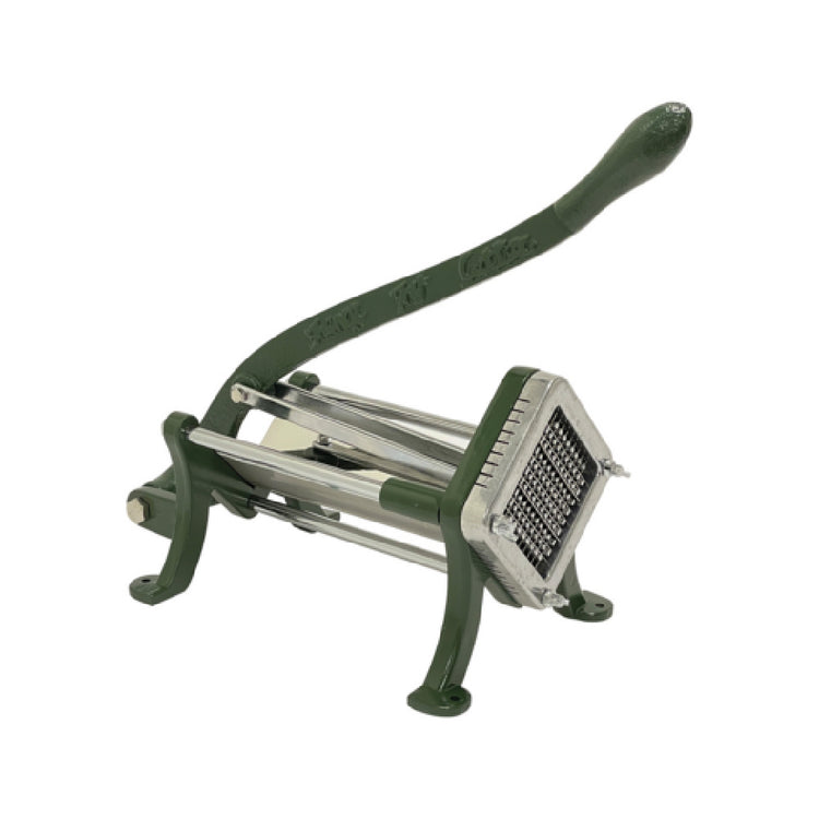 The CAC China FPFC-250 French Fry Cutter is a specialized kitchen tool designed for precision and efficiency, ideal for both commercial and home use. Engineered to deliver 1/4-inch square cuts, this cutter ensures consistency in size and shape, enhancing the presentation and cooking of French fries. The device features a robust stainless steel blade, known for its durability and resistance to corrosion, thereby ensuring long-lasting performance even with frequent use. Its cast iron body provides a sturdy and stable base, minimizing movement during operation, which is essential in a fast-paced kitchen environment. The ergonomic handle is designed to reduce hand fatigue, allowing for comfortable and prolonged use, making it particularly beneficial for food service professionals who require high-capacity output. Packed as a complete set, this French fry cutter is a valuable addition to any culinary setting, from bustling restaurant kitchens to home gourmet endeavors, offering a reliable solution for producing uniform French fries effortlessly. Its combination of heavy-duty materials and user-friendly design highlights its commitment to quality and functionality, making it a practical choice for those in the food industry seeking efficiency and consistency in food preparation.