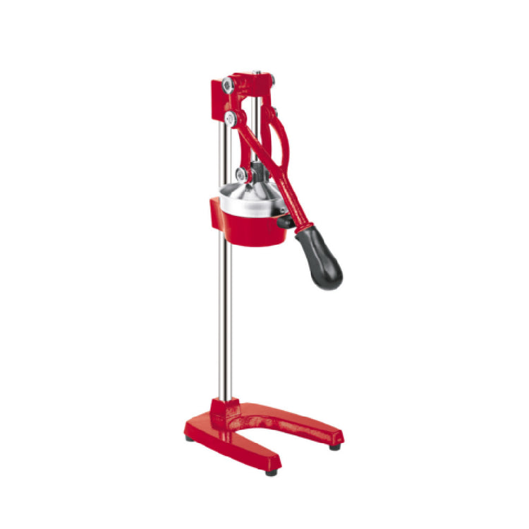 The CAC China FPJC-23RD Juice Squeezer is a countertop heavy-duty appliance built to withstand rigorous usage in both commercial and residential settings. It features a robust 3-pinion system capable of delivering up to 265 lbs of pressure, ensuring maximum extraction from fruits with minimal effort. The juice squeezer is crafted with a cast iron frame that boasts an acid-resistant finish, enhancing its durability and lifespan. This model is designed with non-skid rubber feet, providing stability during operation and preventing any unwanted movement on the countertop. A key component of its design is the removable stainless steel strainer, which facilitates easy cleaning and maintenance. The vibrant red color of the appliance not only adds a touch of style to any kitchen setting but also signifies its heavy-duty capability. Each unit is conveniently packed in sets of two per case, catering to the needs of larger operations that require multiple units. The CAC China FPJC-23RD Juice Squeezer is ideal for juice bars, cafes, and restaurants that demand efficient performance and longevity from their equipment, while home users will appreciate its robust build and ease of use in their daily juicing routines.