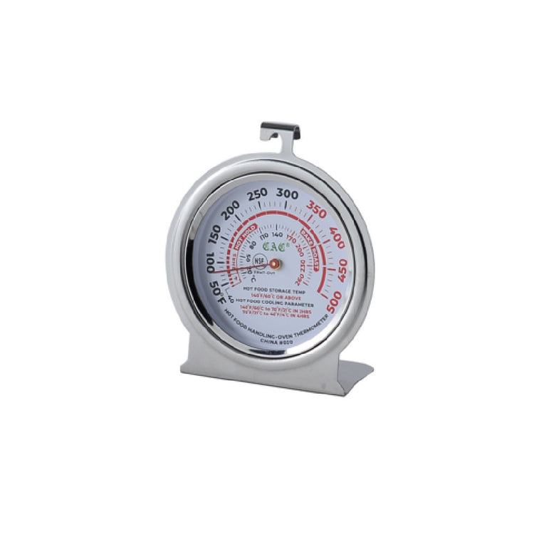 The CAC China FPMT-OV7 Equil Thermo® Oven Thermometer is expertly designed for precision temperature monitoring in commercial and residential kitchens. Featuring a 3" dial, this thermometer ensures easy readability, allowing chefs and home cooks to effortlessly track oven temperatures. The probe length is crafted for compatibility with various oven types, enhancing its usability across different culinary environments. Its top hook design provides convenient placement options within the oven, ensuring stability and accurate readings. Engineered with reinforced glass, the thermometer is built to withstand high heat conditions and maintain clarity over time. The temperature range of 40-500°F (10-260°C) caters to a wide array of cooking and baking requirements, offering versatility for professional chefs and cooking enthusiasts alike. The NSF certification underscores its adherence to public health and safety standards, making it a reliable tool within the foodservice industry. Packaged with 144 units per case, the CAC China FPMT-OV7 Equil Thermo® Oven Thermometer is an ideal choice for bulk purchasing, suitable for restaurants, culinary schools, and large-scale catering operations. Its blend of durability, accuracy, and versatility positions it as a noteworthy instrument for achieving culinary precision.