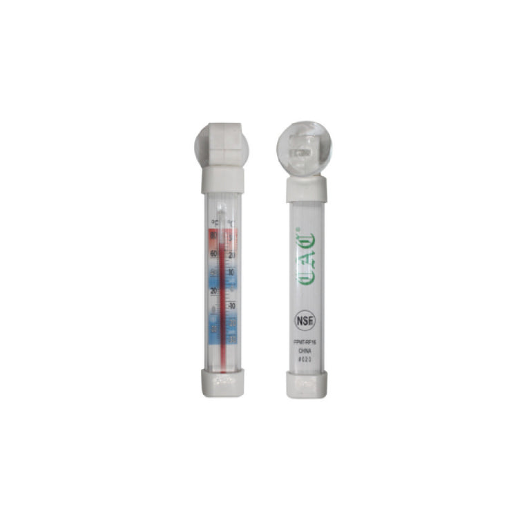 The CAC China FPMT-RF16 Equil Thermo® Fridge/Freezer Thermometer is a precision instrument designed for monitoring the temperature within refrigeration units, ensuring optimal storage conditions for perishable goods. Measuring at 2-7/8 x 5/8 inches, this thermometer utilizes a liquid-in-glass system that provides an accurate and reliable temperature reading. It includes a suction cup for easy installation, allowing it to be firmly affixed inside a fridge or freezer. The thermometer covers a broad temperature range of -26 to 86°F (-30 to 30°C), making it suitable for a variety of refrigeration needs across different segments of the foodservice industry. Whether used in commercial kitchens, grocery stores, or home environments, the thermometer's NSF certification guarantees it meets strict public health protection standards, ensuring safety and efficacy. Each unit is packed with two thermometers, and with 144 packs per case, it caters to bulk purchasing requirements. The CAC China FPMT-RF16 Equil Thermo® Thermometer combines durability with high performance, making it an essential tool for maintaining temperature-sensitive inventory in optimal conditions.