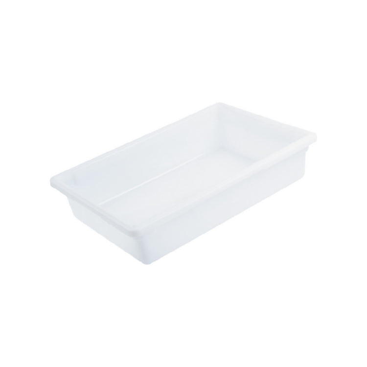 The CAC China FS4F-6W Food Storage Box 9 Gallon Full-size is a versatile storage solution designed for both commercial and residential kitchens. With dimensions of 26 inches in length, 18 inches in width, and 6 inches in height, this full-size container provides ample space for storing a variety of food items. Constructed from durable polyethylene, the box can withstand a broad temperature range from -40°F or -40°C to 160°F or 71°C, making it suitable for both freezing and ambient storage. The white, BPA-free material ensures safe storage of food products, and its NSF certification highlights its compliance with stringent food safety standards. Packed six per case, the CAC China FS4F-6W is an economical choice for bulk purchasing. Its robust build and design make it an essential tool for chefs, catering businesses, and food service operations looking for reliable storage solutions. The combination of temperature resistance, high capacity, and food-safe materials makes this storage box an indispensable asset for efficiently managing kitchen inventory across diverse culinary environments.