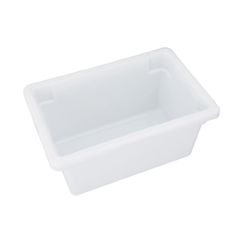 The CAC China FS4H-9W Food Storage Box - 5 Gallon Half-size is expertly designed to meet the demands of various food service segments, from commercial kitchens to catering operations. With dimensions of 18"L x 12"W x 9"H, this storage box offers ample space for efficient organization and storage of food items. Constructed from durable polyethylene, it effectively withstands temperatures ranging from -40°F/-40°C to 160°F/71°C, ensuring the safe storage of both cold and hot items. The box is BPA-free, aligning with health-conscious practices, and carries NSF certification, highlighting its compliance with robust safety and sanitation standards. Available in white, this food storage box is packed by 12 each per case, catering to bulk storage needs. Its half-size structure is particularly advantageous for spaces with limited room, providing flexibility without compromising storage capacity. The CAC China FS4H-9W Food Storage Box is a practical solution for food industry professionals seeking reliability and versatility in their storage solutions, making it a valuable addition to any food service environment.