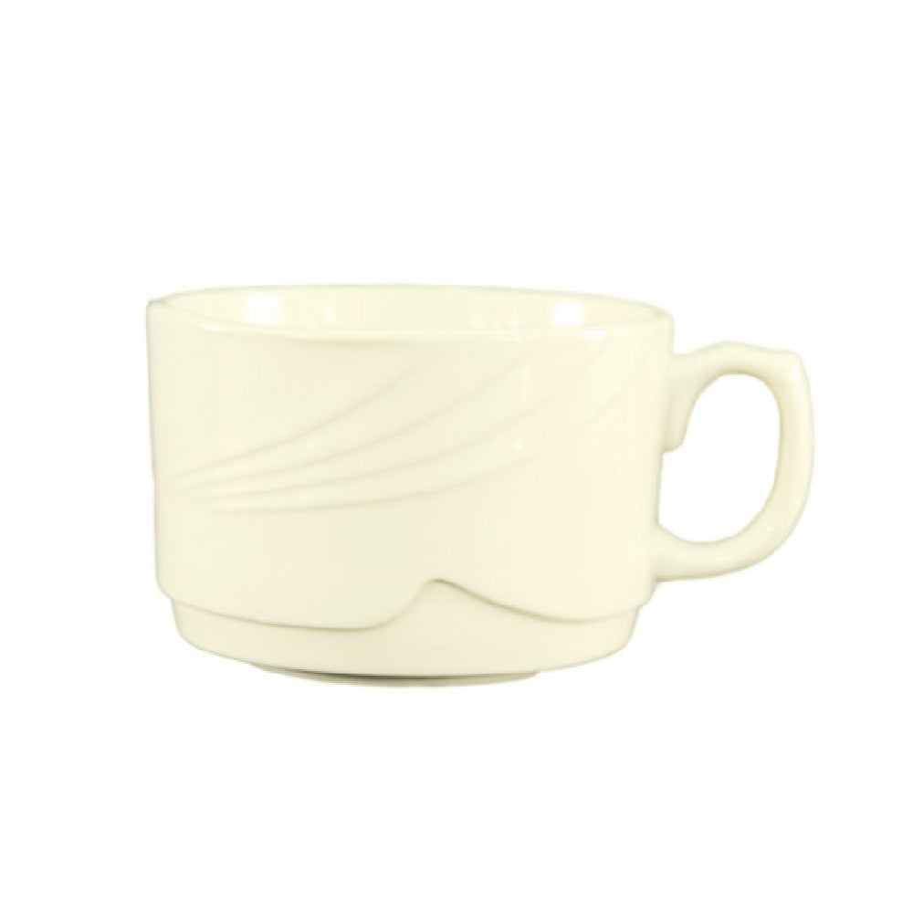 The CAC China GAD-38 Garden State Coffee Cup is a versatile and elegantly designed porcelain cup meant for both professional and casual dining settings. With a capacity of 12 ounces, it measures 4 inches in diameter and 2-7/8 inches in height, offering the perfect size for serving a generous portion of coffee or any other hot beverage. Its round shape and embossed design add a touch of sophistication, making it suitable for upscale restaurants, cafes, or even at-home use. The stackable feature of the GAD-38 is particularly beneficial for businesses with limited storage space, allowing for efficient organization without compromising on style. Made from Bone White porcelain, this coffee cup is not only aesthetically pleasing but also highly durable, ensuring long-term use. Designed to withstand the rigors of daily use, it is dishwasher, oven, and microwave safe, providing seamless integration into various kitchen environments and workflows. Each case is packed with 36 cups, making it a practical choice for establishments needing to serve multiple guests simultaneously. The CAC China GAD-38 Garden State Coffee Cup combines functionality with elegance, catering to a wide range of industry markets from hospitality to personal use.