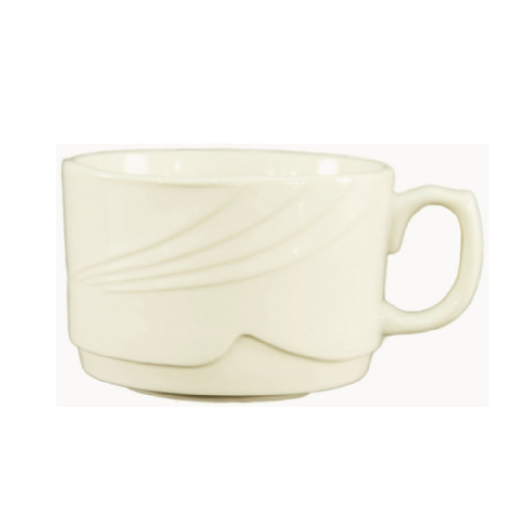 The CAC China GAD-56 Garden State Coffee Cup is a versatile 15 oz. cup, measuring 4-3/8" in diameter and 2-7/8" in height, ideal for various dining environments, including cafes, restaurants, and hospitality settings. Its round, stacking design is both space-saving and efficient, allowing for easy storage in busy kitchens. Crafted from high-quality porcelain, this cup boasts a Bone White finish, adding a touch of elegance to any table setting. Its embossed detailing further enhances its aesthetic appeal, making it a standout choice for establishments looking to combine functionality with style. The cup is dishwasher, oven, and microwave safe, offering convenience and versatility for different service requirements. Sold by the case with a packaging of 3 dozen per case, the CAC China GAD-56 is perfect for bulk purchasing, catering to large events or for establishments requiring a substantial inventory. Its durable construction ensures longevity and resilience, supporting everyday use in high-traffic areas. This coffee cup is a reliable choice for businesses seeking to deliver quality service while maintaining a sophisticated dining experience, making it a valuable addition to any professional kitchen setup.