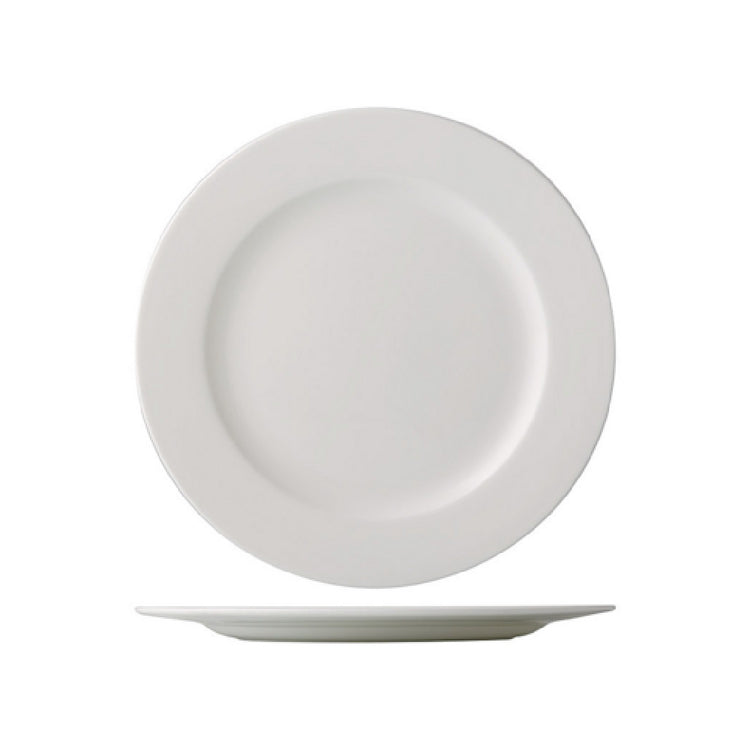 The CAC China GDC-20 Grand Canyon Plate 11-1/4" Dia. x 3/4"H Round is a meticulously crafted porcelain product designed to meet the demands of various market segments within the dining and hospitality industry. With its dimensions of 11-1/4 inches in diameter and a height of 3/4 inch, this round plate offers an ideal balance of size and elegance for serving diverse culinary creations. The plate features a glazed foot, ensuring stability and reducing the risk of slipping during use, a critical attribute for high-paced restaurant environments. Fully vitrified, the plate is resistant to moisture absorption, enhancing its durability and longevity, which is particularly valuable in preventing chips and cracks over time. Its bone white color presents a neutral backdrop, allowing the vibrant colors of dishes to stand out, a feature appreciated in both casual and fine dining settings. Designed for practicality, this plate is safe for use in dishwashers, ovens, and microwaves, providing versatility and convenience for chefs and home cooks alike. Sold by the case, with each case containing one dozen plates, the CAC China GDC-20 Grand Canyon Plate is an optimal choice for establishments seeking reliable, aesthetically pleasing, and durable dinnerware solutions.