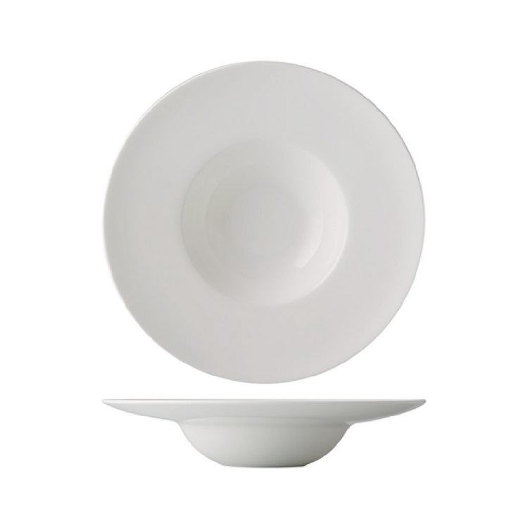 The CAC China GDC-311 Grand Canyon Soup Bowl is a meticulously crafted piece of porcelain ware, designed to enhance any table setting with its elegant Bone White finish. With a capacity of 12 oz., this bowl is perfectly sized for serving soups and other delicacies, making it a versatile addition to both professional and home kitchens. The bowl features a generous diameter of 11 inches and a height of 2-1/4 inches, complemented by a wide rim that adds to its aesthetic appeal while providing practical ease for handling. The glazed foot ensures stability and reduces surface scratches, preserving both the bowl and the tabletop. Fully vitrified, this soup bowl is engineered for durability and is safe for use in dishwashers, ovens, and microwaves, which enhances its utility across various culinary applications. Sold by the case and packed by the dozen, the CAC China GDC-311 Grand Canyon Soup Bowl caters to the needs of restaurants, catering services, and hospitality businesses that require high-quality, reliable tableware. Its robust construction and classic design make it an ideal choice for establishments seeking to combine functionality with style in their service offerings.