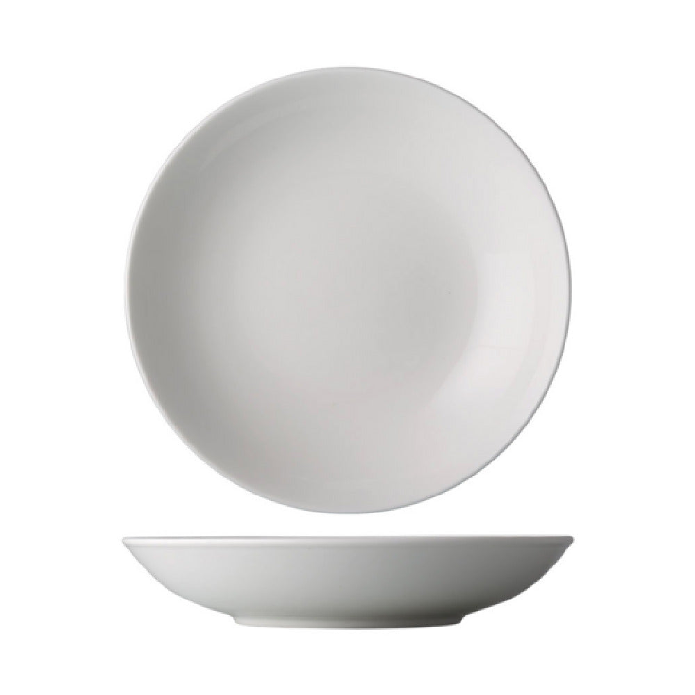 The CAC China GDC-80 Grand Canyon Salad Bowl is a meticulously crafted piece designed for culinary professionals and home chefs alike who value both functionality and aesthetic appeal. With a capacity of 16 ounces, this round salad bowl measures 7-1/2 inches in diameter and 1-1/2 inches in height, offering ample space for serving salads and other dishes. The bowl features a glazed foot, enhancing its stability and preventing scratches on surfaces. Made from fully vitrified porcelain, it boasts durability and resistance to chipping, ensuring a long-lasting addition to any dinnerware collection. Its bone white color provides a classic and elegant appearance suitable for various dining settings. The CAC China GDC-80 is dishwasher, oven, and microwave safe, offering versatility and convenience for busy kitchens. Sold by case and packed by two dozen per case, this bowl is an excellent choice for restaurants, catering services, and event planners looking for reliable and stylish serving solutions. Its combination of robust construction and timeless design makes it a valuable asset in both commercial and residential environments, where quality and presentation are of utmost importance.