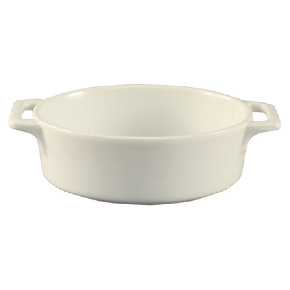 The CAC China GMJ-6 RCN Specialty Gourmet Jar is a practical and stylish addition to any culinary setting, offering a 12 oz. capacity that is perfectly suited for various food service applications. Measuring 6-1/2 inches in length, 4-1/2 inches in width, and 2 inches in height, this oval-shaped jar is designed with two convenient handles that ensure easy handling and transport. The jar includes a lid, enhancing its functionality by keeping contents fresh and secure. Crafted from high-quality porcelain, it boasts a Super White finish that adds a touch of elegance to any presentation. Its durable construction ensures the jar is safe for use in dishwashers, ovens, and microwaves, making it versatile for a range of culinary tasks. This product is sold by case, with each case packed with three dozen jars, providing ample supply for larger operations. The CAC China GMJ-6 RCN Specialty Gourmet Jar is an ideal choice for restaurants, catering services, and other food establishments that require reliable, aesthetically pleasing storage solutions for their gourmet offerings.