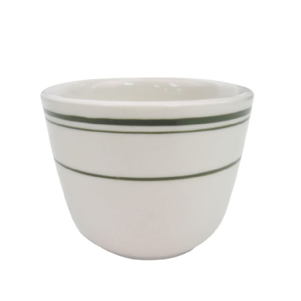The CAC China GS-45 Greenbrier Tea Cup is a meticulously crafted beverage vessel with a capacity of 4-1/2 oz., designed to meet the diverse needs of the hospitality industry. This round tea cup has a diameter of 2-7/8" and stands at a height of 2-1/4", making it an ideal choice for tea service in restaurants, cafes, and catering settings. Constructed from durable stoneware (ceramic), it boasts a robust design that is both dishwasher, oven, and microwave safe, ensuring ease of maintenance and versatility in use. The Green Band/American White color scheme adds a touch of elegance to any table setting, enhancing the visual appeal of the dining experience. The tea cups are sold by the case, with each case packed by 3 dozen, providing an economical solution for businesses requiring bulk quantities. The CAC China GS-45 Greenbrier Tea Cup is perfect for establishments that prioritize both style and functionality, offering a reliable and aesthetically pleasing option for serving tea. Its thoughtful design and high-quality material make it a preferred choice for different market segments within the food service industry, catering to both everyday use and special occasions.