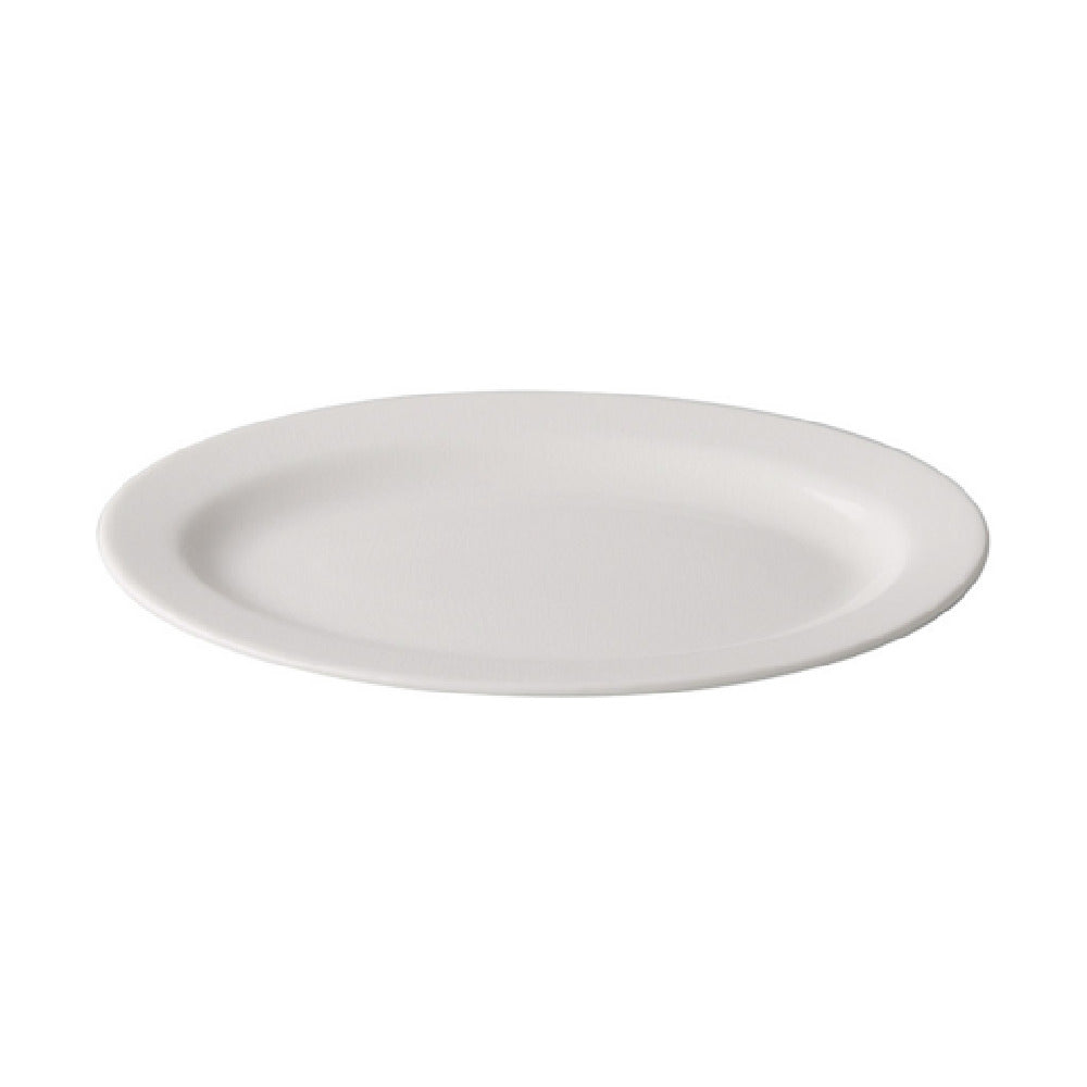The CAC China GW-13 Great Wall Platter is an elegant oval platter, measuring 11-1/2 inches in diameter, that offers both style and functionality. Crafted from high-quality porcelain in a classic Bone White, it provides a versatile serving solution suitable for various dining settings. The platter's rolled edge ensures a refined appearance while adding extra durability to withstand daily use in bustling environments. The glazed foot design not only enhances its visual appeal but also ensures stability when placed on surfaces. This platter is dishwasher, oven, and microwave safe, providing convenience and efficiency for busy kitchens, whether in a high-end restaurant or a cozy catering service. It is sold by the case, packed in a dozen, making it an ideal choice for businesses looking to maintain consistency across their service ware. The CAC China GW-13 Great Wall Platter seamlessly blends practicality with aesthetic appeal, making it a valuable addition to any food service operation that prioritizes quality and durability.