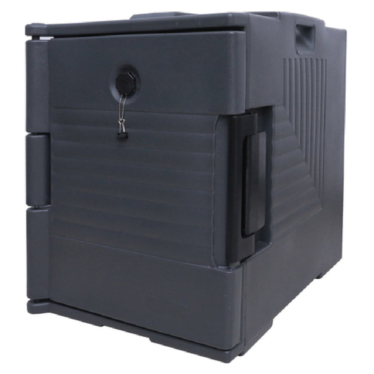 The CAC China ICTP-4 Food Pan Carrier Full Size (1) Compartment is a versatile and robust solution for food transport and storage, tailored to meet the demands of the foodservice industry. This carrier accommodates full-size (1/1), half-size (1/2), and third-size (1/3) food pans, making it adaptable to various culinary needs. Its construction includes high-quality polyethylene, ensuring durability while the gray exterior offers a professional appearance. The carrier is insulated with polyurethane foam, providing exceptional temperature retention to keep food fresh over extended periods. An adjustable vent cap is incorporated, allowing for precise ventilation control to maintain optimal storage conditions. The design is stackable and interlocking, promoting efficient use of space and stability during transport. Certified by NSF, it adheres to strict health and safety guidelines, ensuring peace of mind for users. This product arrives as a single set, ready to integrate into your operation's workflow, making it an indispensable asset for catering companies, restaurants, and institutional kitchens requiring reliable and efficient food pan transport and storage solutions. Its thoughtful engineering combines practicality and compliance, serving diverse market segments with a focus on quality and reliability.