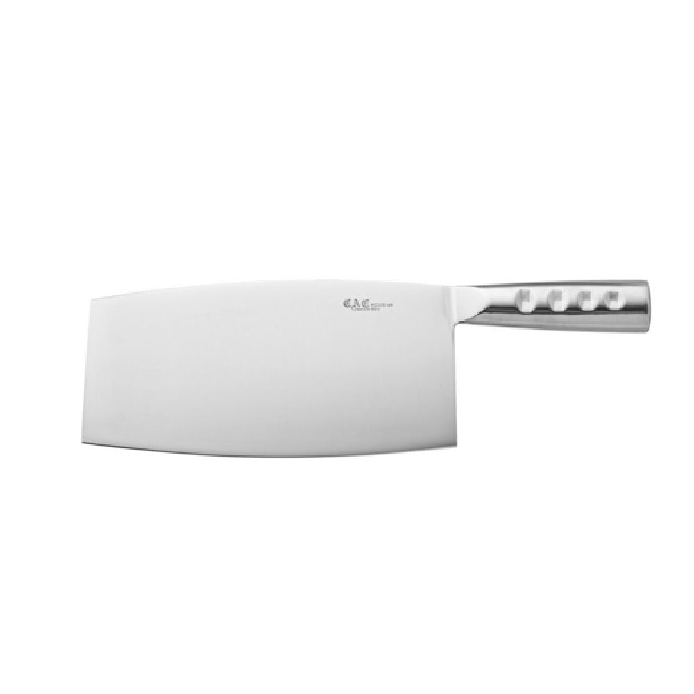 The CAC China KCCS-84 Chinese Cleaver 8-1/4" with stainless steel handle is a precision-crafted kitchen tool designed for both professional chefs and home cooks. This cleaver features an 8-1/4 inch blade, offering a perfect balance of size and weight for efficient cutting and chopping tasks in the kitchen. With its stainless steel handle, the cleaver provides a comfortable grip, ensuring easy handling and reducing hand fatigue during extensive use. The stainless steel construction not only enhances durability but also contributes to the cleaver's sleek and modern aesthetic, making it a stylish addition to any culinary environment. Each case contains 12 individually packed cleavers, catering to the needs of commercial kitchens that require reliable and consistent performance in bulk. The CAC China KCCS-84 is ideal for cutting through meat, vegetables, and other ingredients with precision and ease. Its robust design and high-quality materials make it an excellent choice for different market segments, including restaurants, catering services, and culinary schools, where efficiency and reliability are paramount. The cleaver's versatility and superior craftsmanship ensure it remains a vital tool in any kitchen setup, serving a wide range of culinary applications.