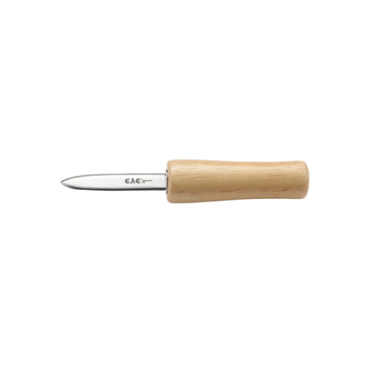 The CAC China KWOC-278 Oyster/Clam Knife 2-7/8" Pointed Tip stands out as a specialized tool in the culinary world, designed to meet the precise demands of seafood preparation. This knife features a 2-7/8-inch pointed tip, an essential characteristic that enhances its ability to efficiently open and clean oysters and clams. The pointed tip is engineered to navigate the natural contours of shellfish, allowing for precise and safe shell entry. Complementing the blade, the wooden handle provides a comfortable grip, ensuring stability and control during use, which is crucial in busy kitchen environments. The KWOC-278 is packed 72 each per case, making it a practical choice for large-scale food service operations such as restaurants, catering companies, and seafood processing facilities that require reliable and efficient tools in bulk. This oyster/clam knife not only emphasizes functionality but also brings a touch of traditional craftsmanship with its wooden handle, making it suitable for both professional chefs and seafood enthusiasts. Its robust design and quality construction reflect CAC China's commitment to producing durable and efficient kitchen tools, making it an indispensable item for any establishment focused on seafood excellence.