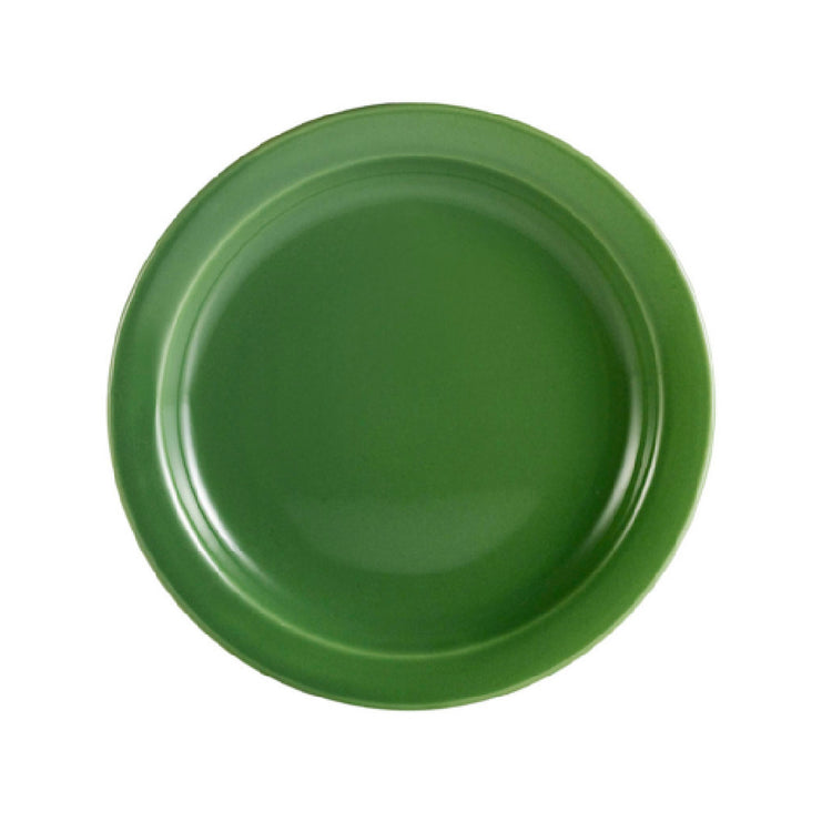 The CAC China L-6NR-G Las Vegas Plate 6-1/2" Dia. x 3/4"H Round is a versatile stoneware piece expertly crafted for diverse dining experiences. With its 6-1/2" diameter and 3/4" height, this plate features a narrow rim design that complements modern table settings while maximizing the food presentation area. Constructed from durable ceramic, it ensures longevity and resilience against the demands of commercial use. This plate is dishwasher, oven, and microwave safe, providing convenience and efficiency in busy culinary environments. Its green hue adds a vibrant touch to any dining arrangement, making it suitable for restaurants, hotels, and catering services aiming to enhance their visual appeal. Sold by the case, with each case containing 3 dozen plates, it offers scalable solutions for establishments with varying capacity needs. The CAC China L-6NR-G combines practicality with elegance, meeting industry standards for performance and aesthetics across different market segments within the hospitality sector.