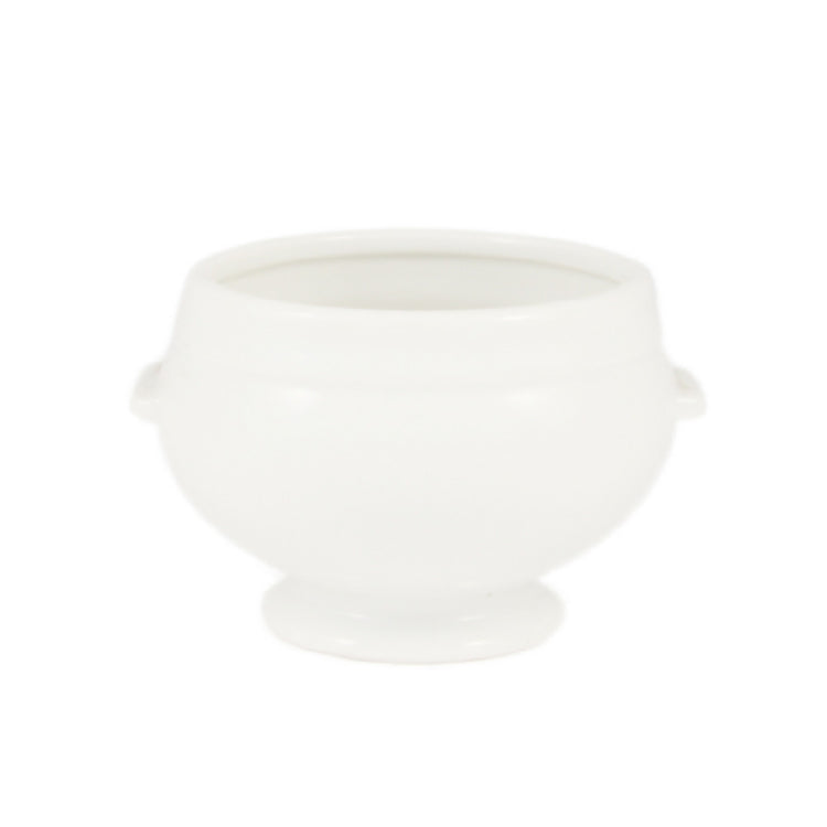 The CAC China LN-12-P1 Lion Head Bouillon is a versatile serving piece, ideal for various culinary settings. With a capacity of 12 oz., it offers ample space for serving broths, soups, and stews. Measuring 5-3/4"L x 4-3/4"W x 3-1/2"H, this bouillon is crafted from high-quality porcelain, ensuring durability and a sophisticated presentation. Its Super White finish enhances the visual appeal, making it suitable for upscale dining environments. The Lion Head design adds a touch of elegance and tradition, appealing to both modern and classic table settings. This bouillon is dishwasher safe, allowing for easy cleaning and maintenance. Additionally, it is oven and microwave safe, providing versatility in food preparation and serving. Sold by case and packed by 2 dozen per case, the CAC China LN-12-P1 is a practical choice for restaurants, catering services, and hospitality venues seeking to deliver consistent and elegant dining experiences. Its combination of aesthetic appeal, practical features, and durable construction positions it as a reliable choice within the foodservice industry.