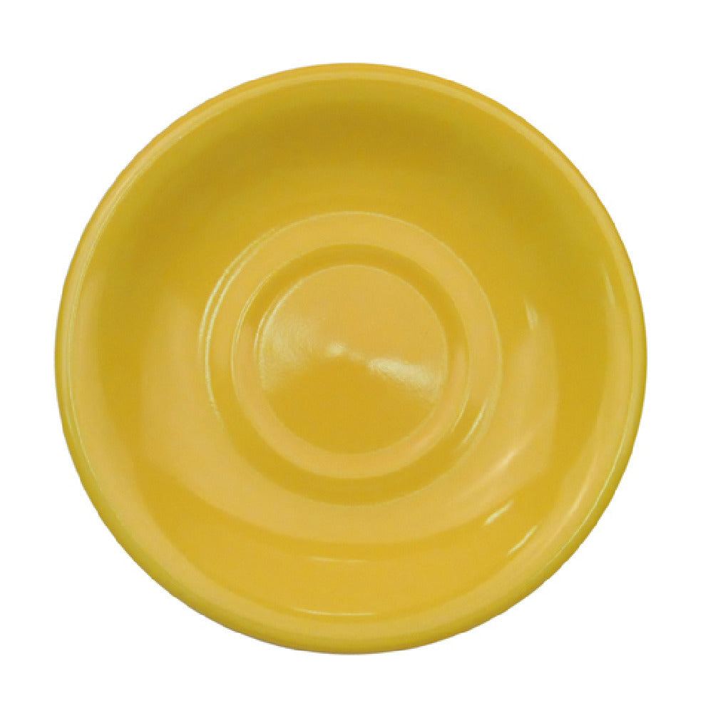 The CAC China LV-2-Y Las Vegas Saucer is a versatile and functional piece, measuring 6" in diameter and 1" in height, designed to enhance dining presentations with its round shape and rolled edge. Made from durable stoneware ceramic, this saucer is available in a vibrant yellow, perfectly complementing other items such as the LV-1-Y, TM-8-Y, and LV-4-Y. Its robust construction ensures it is dishwasher, oven, and microwave safe, making it suitable for various food service environments, including restaurants, hotels, and catered events. This product is sold by the case, with each case containing 36 saucers, offering a practical and cost-effective solution for businesses looking to maintain a consistent and stylish appearance across their tableware collections. The CAC China LV-2-Y Las Vegas Saucer is ideal for establishments that value both aesthetics and functionality, providing reliable performance and an eye-catching addition to any table setting. Its compatibility with other products in the Las Vegas line allows for cohesive and versatile table presentations, making it a valuable choice for those in the hospitality industry aiming for elegance and practicality.