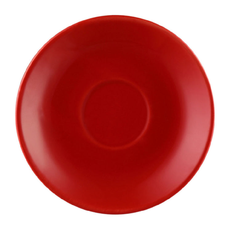 The CAC China LV-36-R Las Vegas After Dinner Cup Saucer - 4-1/2" Dia. X 3/4"H Round is a premium stoneware product tailored for a diverse range of dining establishments. Its dimensions, 4-1/2 inches in diameter and 3/4 inches in height, make it an ideal fit for serving after-dinner beverages. This saucer features a rolled edge design, enhancing its aesthetic appeal and functional durability. Constructed from high-quality stoneware (ceramic), it offers exceptional resilience, making it dishwasher, oven, and microwave safe. The vibrant red finish corresponds with the LV-35-R series, accentuating its visual appeal on any tabletop. Sold by the case and packed by 3 dozen per case, it caters to bulk purchasing needs of cafes, restaurants, and catering services seeking both quality and quantity. This saucer's compatibility with various appliances and its robust design make it a versatile addition to any dining setting, providing reliable performance across different market segments within the food service industry.