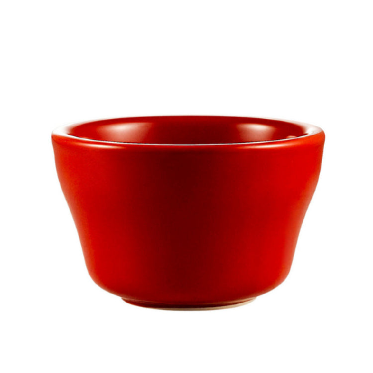 The CAC China LV-4-R Las Vegas Bowl is a versatile dining solution with a capacity of 7-1/4 oz., making it suitable for a variety of culinary presentations. With dimensions of 4 inches in diameter and 2-1/2 inches in height, this round bowl is both compact and practical, fitting seamlessly into diverse dining environments. Its rolled edge design adds a touch of elegance while increasing durability, making it a reliable choice for frequent use. Crafted from stoneware ceramic, this bowl is robust and maintains its aesthetic appeal over time. It is available in a striking red color, adding a vibrant splash to any table setting. The LV-4-R bowl is designed for convenience and efficiency, being dishwasher, oven, and microwave safe, allowing for easy cleaning and versatile food preparation. Sold by the case and packed by 3 dozen per case, it is an excellent choice for restaurants, catering services, or large family gatherings, providing both functionality and style. The CAC China LV-4-R Las Vegas Bowl is a practical and attractive addition to any kitchen or dining area, offering quality and versatility that meets the demands of various market segments within the food service industry.
