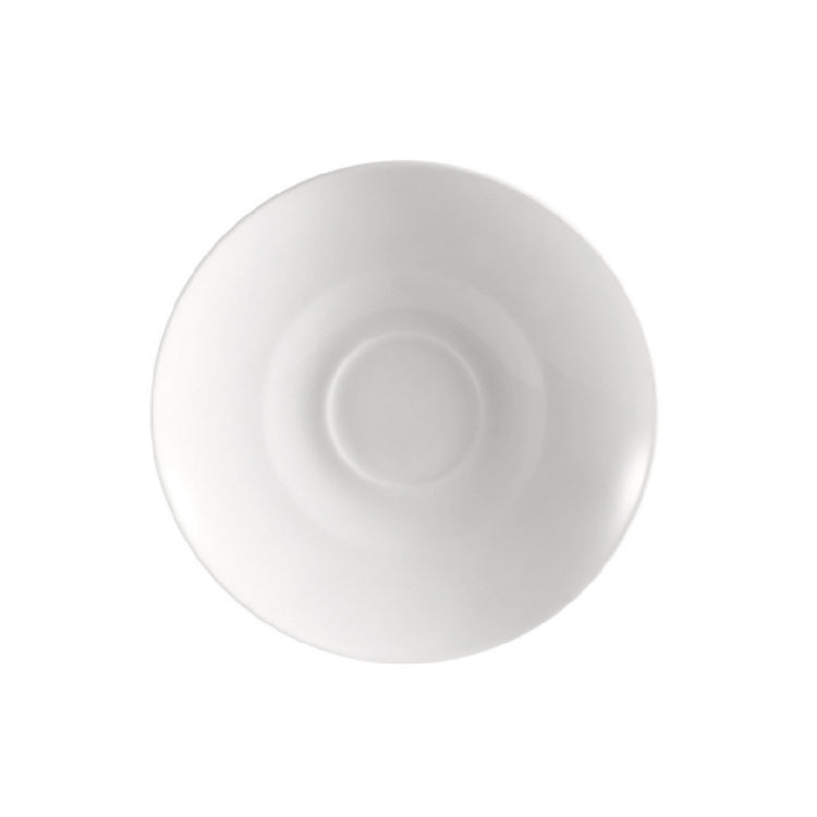 The CAC China MAJ-36 Majesty Saucer is a masterfully crafted piece of bone china, measuring 4-1/2 inches in diameter and 1/2 inch in height, providing a sleek and elegant foundation for complementing the MAJ-35 cup. Its round shape and Bone White color exude sophistication, making it ideal for upscale dining experiences. This saucer is not only visually appealing but also highly functional, being dishwasher, oven, and microwave safe, which caters to the rigorous demands of both residential and commercial kitchens. Packed by the case with 3 dozen per case, the MAJ-36 is perfect for restaurants, cafes, and hospitality sectors that require durable and high-quality tableware in bulk. The bone china material ensures a lightweight yet sturdy construction, enhancing durability while maintaining a refined aesthetic that is appreciated in various dining settings. This product serves as a versatile addition to any establishment aiming to elevate their dining presentation with its timeless elegance and practical features.