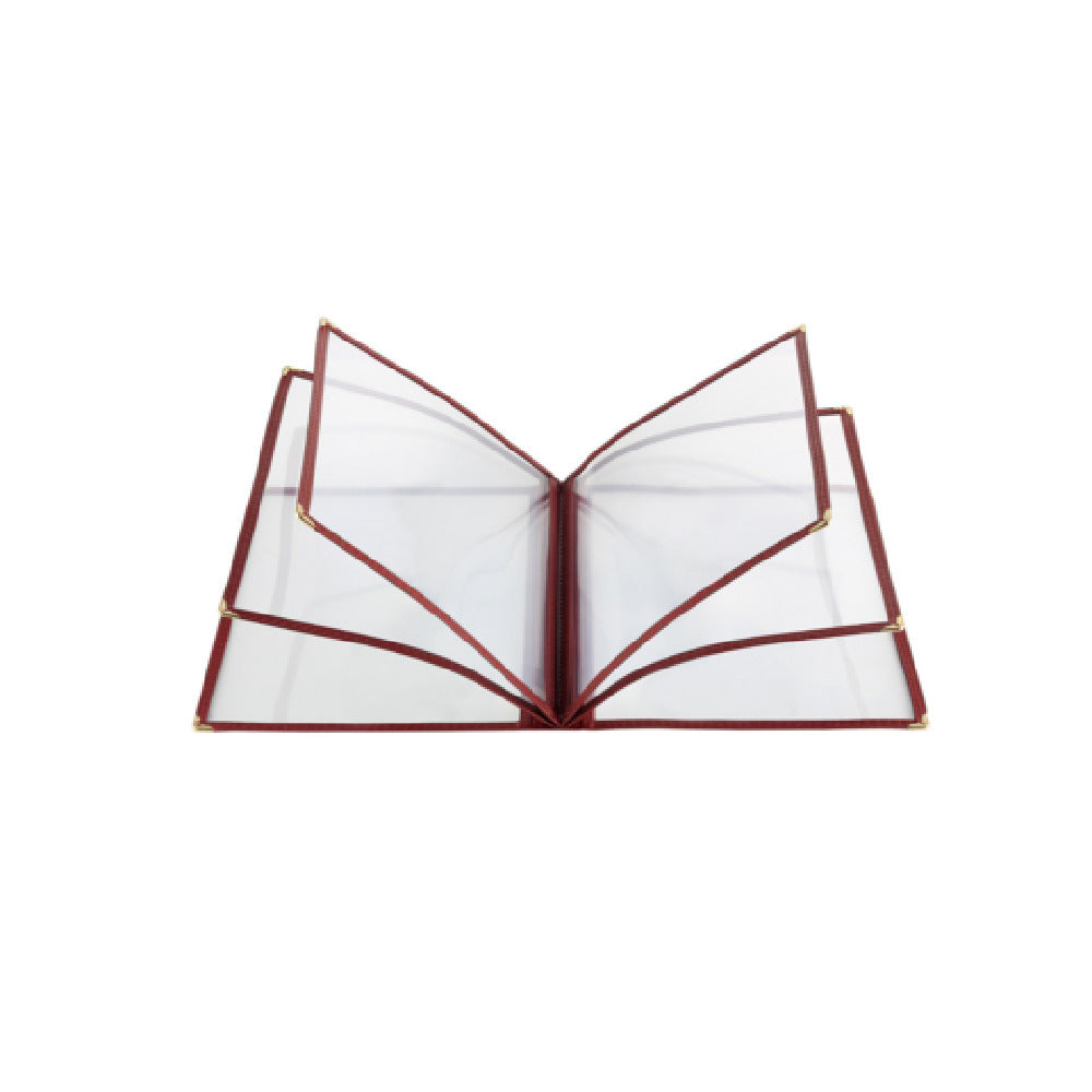 The CAC China MCP6-911BY Menu Cover is an expertly crafted menu presentation solution designed for versatility and durability, catering to a diverse range of industry settings. With dimensions of 8-1/2" x 11", it accommodates standard letter size inserts, making it ideal for restaurant menus, event programs, or hospitality service offerings. Featuring a 6-pocket design, it allows for ample space to display multiple pages while maintaining a sleek and organized appearance. The clear double-sided view ensures that each insert is easily visible, enhancing readability and user interaction. This menu cover is distinguished by its brass corners, adding a touch of elegance and reinforcing durability, which is essential for high-traffic environments. The burgundy trim not only adds a sophisticated aesthetic but also complements a wide array of interior decors. Packed by 50 each per case, the CAC China MCP6-911BY is an efficient choice for bulk purchasing, suited for businesses aiming to outfit multiple locations or store large quantities. This menu cover is an excellent choice for those seeking a reliable and stylish menu presentation solution that combines functionality with a refined look, tailored to meet the needs of diverse business segments within the food and hospitality industries.