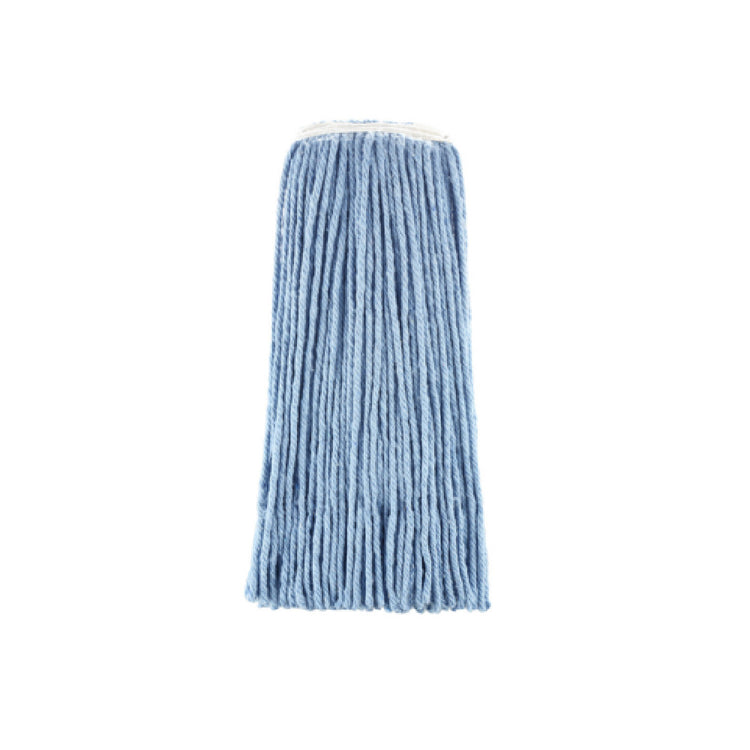 The CAC China MHD1-24BL Wet Mop Head is a premium cleaning tool designed for efficiency and durability in various industrial and commercial environments. This mop head weighs 24 oz. and features a cut-end design, optimizing it for effective water absorption and easy maneuverability. The 1-1/4" band ensures secure attachment to mop handles, enhancing stability during use. Crafted from a 4-ply poly cotton blend yarn, it provides superior strength and longevity, making it ideal for repeated use in demanding cleaning tasks. Its blue color allows for easy identification and designation within cleaning systems or specific areas. A significant advantage of the CAC China MHD1-24BL is its machine-washable nature, which facilitates hassle-free maintenance and prolongs the product's lifespan. Packaged with 20 units per case, it offers a convenient solution for bulk purchasing, catering to the needs of large-scale operations such as janitorial services, hospitality sectors, and educational facilities. This wet mop head embodies robust construction and practical design, ensuring it meets the high standards required by professionals seeking reliable cleaning equipment.