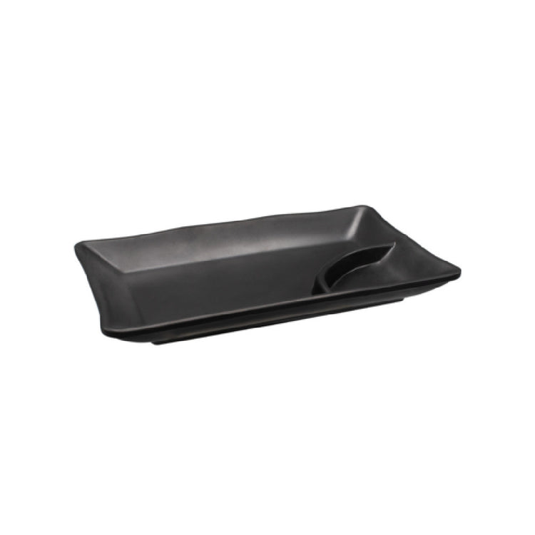 CAC China, ML77-RT8-MK, Platter, 10oz., 7-3/4"W x 4-1/2"D x 1"H, rectangular, (1) triangular compartment, matte black (Sold by case) (Packed By: 4 Dozen Per Case)