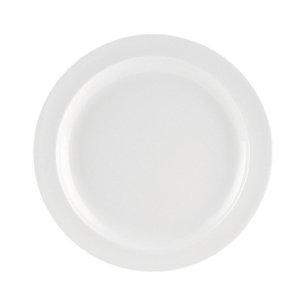 The CAC China MLNC-9 Maxwell Plate 9-3/4" Dia. Round is a meticulously designed piece, ideal for various settings, including restaurants, catering services, and home dining. This round plate boasts a diameter of 9-3/4 inches and features a narrow rim, contributing to its sleek and modern aesthetic. Constructed from high-quality melamine, the plate is lightweight yet remarkably durable, offering break, stain, and odor resistance, which ensures longevity and ease of maintenance. Its white color makes it a versatile choice, seamlessly complementing any table setting or décor style. Furthermore, the plate is dishwasher safe, providing convenient cleaning and upkeep, making it especially beneficial for high-volume food service environments. Sold by the case, each package contains 2 dozen plates, making it an economical choice for businesses looking to stock their kitchens with reliable and stylish tableware. The CAC China MLNC-9 Maxwell Plate combines functionality with elegance, making it a valuable asset across various market segments in the dining and hospitality industries.