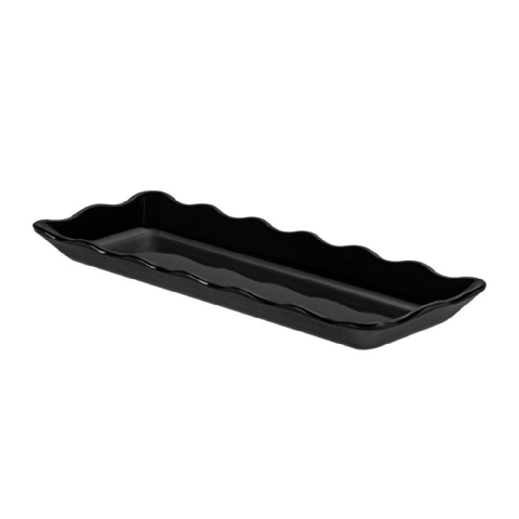CAC China, MLSC-RT14-K, Platter, 13-1/2"W x 5-1/4"D x 1-1/4"H, rectangular, scallop edge, black (Sold by case) (Packed By: 1 Dozen)
