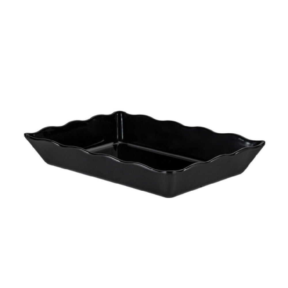 CAC China, MLSC-RT341-K, Platter, 13-3/4"W x 9-1/2"D x 2-1/2"H, rectangular, scallop edge, black (Sold by case) (Packed By: 1 Dozen)
