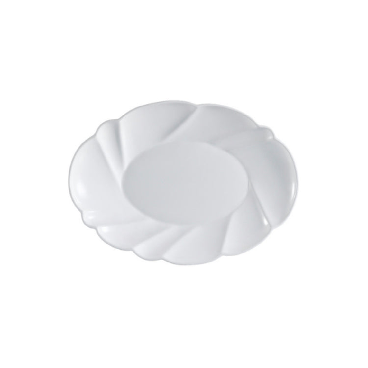 The CAC China MX-SC20 Catering Collection Platter measures 20"L x 14-1/2"W x 3"H, presenting a sophisticated oval design with a distinctive scallop edge. Crafted from high-quality porcelain, this platter boasts a Super White finish, adding elegance to any catering display. Its sturdy construction ensures that it is dishwasher, oven, and microwave safe, making it a versatile choice for food service professionals. This platter is sold in cases, with each case containing four units, making it ideal for large events or everyday catering operations. The CAC China MX-SC20 is perfect for various segments within the catering and food service industry, including banquet halls, hotels, and fine dining establishments. Its generous size and elegant design enable it to accommodate and showcase culinary creations with style and grace, making it an essential addition to any professional setting that values both functionality and aesthetic appeal.