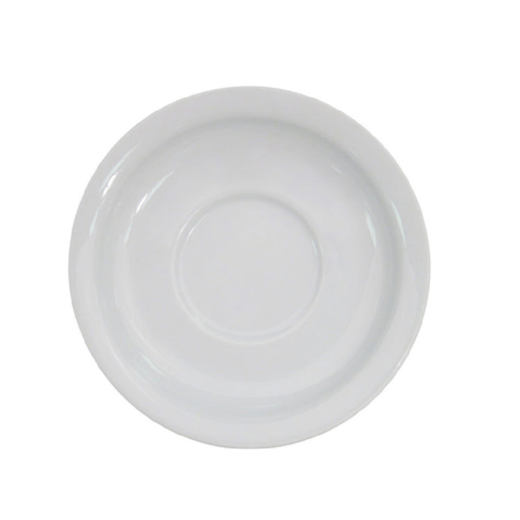 The CAC China NCN-2 Clinton Saucer is a meticulously crafted piece of porcelain tableware that measures 5-5/8 inches in diameter and stands 3/4 inches high, making it an ideal choice for enhancing dining experiences across various settings. Its round design with a narrow rim offers a sleek appearance suitable for contemporary table settings. Constructed from Super White porcelain, this saucer is an embodiment of durability and elegance, capable of withstanding the rigors of frequent use in both casual and fine dining establishments. Designed with practicality in mind, the NCN-2 Clinton Saucer is dishwasher, oven, and microwave safe, providing seamless integration into the fast-paced environment of the food service industry. Sold by the case and packed by 3 dozen per case, this product meets the high-volume demands of restaurants, catering services, and other hospitality ventures. Its versatility and robust construction make it a valuable addition to any culinary operation, appealing to those seeking both functionality and aesthetic appeal in their tableware selections.