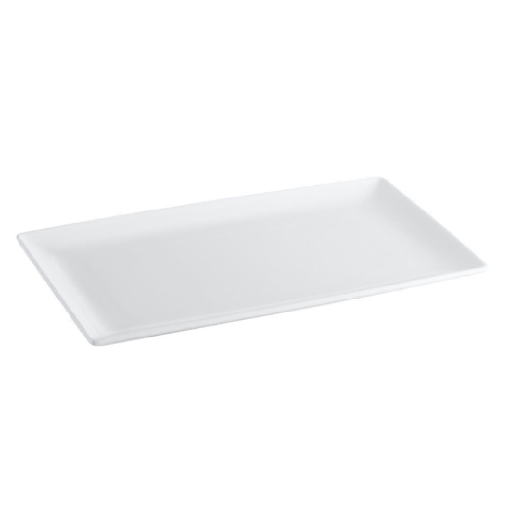 The CAC China NGA-541 Niagara Platter is a meticulously crafted piece of porcelain ware, measuring 13-1/2"L x 7-7/8"W x 7/8"H. Its coupe design enhances its deep rectangular shape, making it suitable for diverse culinary presentations. The platter's glazed foot ensures stability and adds a sophisticated touch to its Bone White finish. Fully vitrified, this platter is engineered for durability, making it resistant to chipping and cracking during everyday use. Its versatility shines as it is dishwasher, oven, and microwave safe, catering to the needs of both home cooks and professional chefs. Sold by the case, with each case containing a dozen platters, it is an ideal choice for high-volume settings such as restaurants, catering services, and hospitality events. The CAC China NGA-541 Niagara Platter combines functionality with elegance, providing a reliable serving solution that complements any table setting.