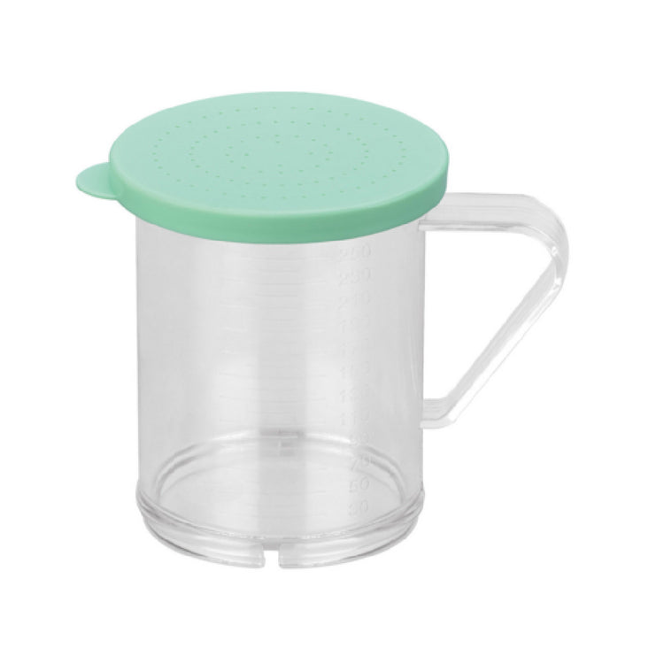 The CAC China PDRG-10G-05 Dredge 10 Oz. with Lid is designed to meet diverse culinary needs, offering both functionality and aesthetic appeal in a compact form. This product, characterized by its vibrant green color, is constructed to hold up to 10 ounces of material, making it a practical choice for professional chefs and home cooks alike. The inclusion of a secure lid ensures that contents remain fresh and uncontaminated, adding a layer of convenience and efficiency to its usage. With a precise measurement of 0.5mm, this dredge is designed for accuracy in dispensing various ingredients, making it an essential tool in any kitchen environment. Packaged as a set of 12 per case, it is ideal for bulk purchases by restaurants, catering services, and culinary institutions. The CAC China PDRG-10G-05 Dredge is a versatile tool that seamlessly integrates into the workflows of different market segments, providing a reliable solution for seasoning, flouring, and other culinary applications. Its robust design and practical features make it an invaluable addition to any kitchen, ensuring consistent performance and ease of use.