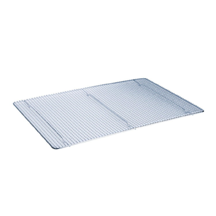 The CAC China PGSH-2416 Sheet Pan Grate 24" X 16" 1/1 Size is a versatile and essential tool for any commercial kitchen. Measuring 24 inches by 16 inches, this grate fits perfectly in a full-size sheet pan, providing optimal support and heat distribution for baking and cooling tasks. The footed design elevates baked goods, promoting even airflow and preventing sogginess, which is crucial for achieving perfect textures in baked products. This sheet pan grate is packed by 24 each per case, making it ideal for high-volume operations such as bakeries, restaurants, and catering services. Its robust construction ensures durability and reliability, withstanding the demands of busy kitchen environments. As a 1/1 size grate, it aligns with standard commercial kitchen equipment, ensuring compatibility and ease of use. The CAC China PGSH-2416 Sheet Pan Grate is a valuable asset for those who require consistent and high-quality results, offering a practical solution for various culinary applications. Whether used for cooling, baking, or holding food items, its sturdy design and efficient functionality make it a must-have for professionals seeking to maintain high standards in food preparation and presentation.