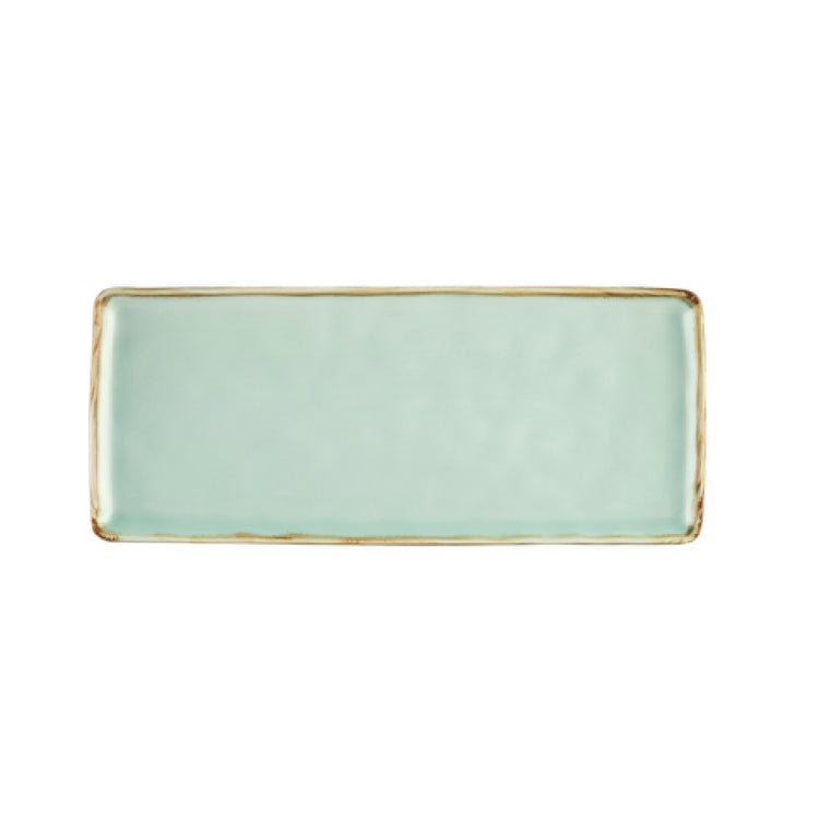 The CAC China PMS-RT41-G Palm Springs Platter is a meticulously crafted porcelain piece, measuring 14L x 6W x 1/2H inches, designed to meet diverse culinary presentation needs. Distinguished by its reactive glaze in a light green hue, this rectangular platter offers both aesthetic appeal and functional durability, serving as an elegant platform for showcasing culinary creations. Sold by the case, with each case containing one dozen platters, this product is tailored for large-scale food service operations, such as restaurants, catering businesses, and hospitality venues, providing an efficient solution for high-volume plating requirements. The platter's substantial length and width accommodate a wide range of dishes, from appetizers to entrees, enhancing its versatility across various cuisines. Its high-quality porcelain construction ensures resistance to chipping and cracking, making it suitable for frequent use in busy kitchen environments. This platter aligns with industry standards for professional tableware, offering a sophisticated option for establishments aiming to elevate their dining presentation. The CAC China PMS-RT41-G Palm Springs Platter embodies a blend of practicality and refined design, making it an indispensable choice for culinary professionals seeking to enhance their service with stylish and durable tableware solutions.