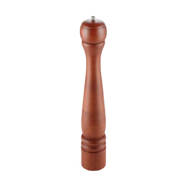 The CAC China PMW1-18BN Pepper Mill stands at an impressive 18 inches in height and is crafted to meet the demands of both professional chefs and home cooking enthusiasts. Its ergonomic design features a metal grinding mechanism that ensures precision and consistency in every use. The adjustable top metal grinding knob allows users to customize the coarseness of their pepper, catering to a variety of culinary preferences. Constructed from solid hardwood, this pepper mill is not only durable but also aesthetically pleasing, showcasing a sophisticated brown matte finish. The pepper mill is packed at 12 each per case, making it a practical choice for restaurants, catering services, and retail environments. This product is particularly valuable for establishments that emphasize the importance of freshly ground pepper, offering a reliable tool that enhances flavor profiles with ease. The combination of its solid construction, adjustable grinding settings, and elegant design makes the CAC China PMW1-18BN Pepper Mill a standout choice in the culinary industry, providing both functionality and style for any kitchen setting.