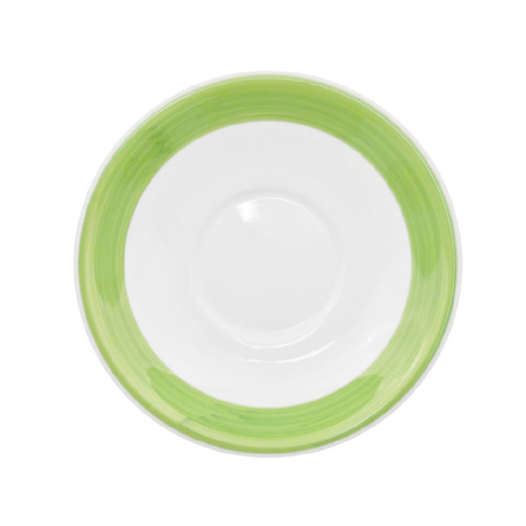 CAC China R-2-G Rainbow Saucer 6" Dia. X 1/2"H Round is a versatile piece of stoneware designed to meet the diverse needs of the foodservice industry. With a diameter of 6 inches and a height of 1/2 inch, this round saucer is crafted from durable stoneware ceramic, making it a perfect choice for establishments that prioritize both aesthetics and functionality. Its striking green hue complements a wide range of table settings and is specifically designed to be paired with models R-1-G, R-17-G, and R-4-G, ensuring versatility in presentation. This product is dishwasher, oven, and microwave safe, offering convenience and efficiency in both preparation and cleanup processes. Ideal for restaurants, cafes, and catering businesses, the CAC China R-2-G Rainbow Saucer provides a reliable platform for serving a variety of dishes, from appetizers to desserts. Sold by case and packed with 3 dozen per case, it is an excellent choice for businesses looking to maintain a consistent and appealing presentation across all service areas. The combination of its robust construction and vibrant color makes it a practical yet stylish addition to any professional dining environment.