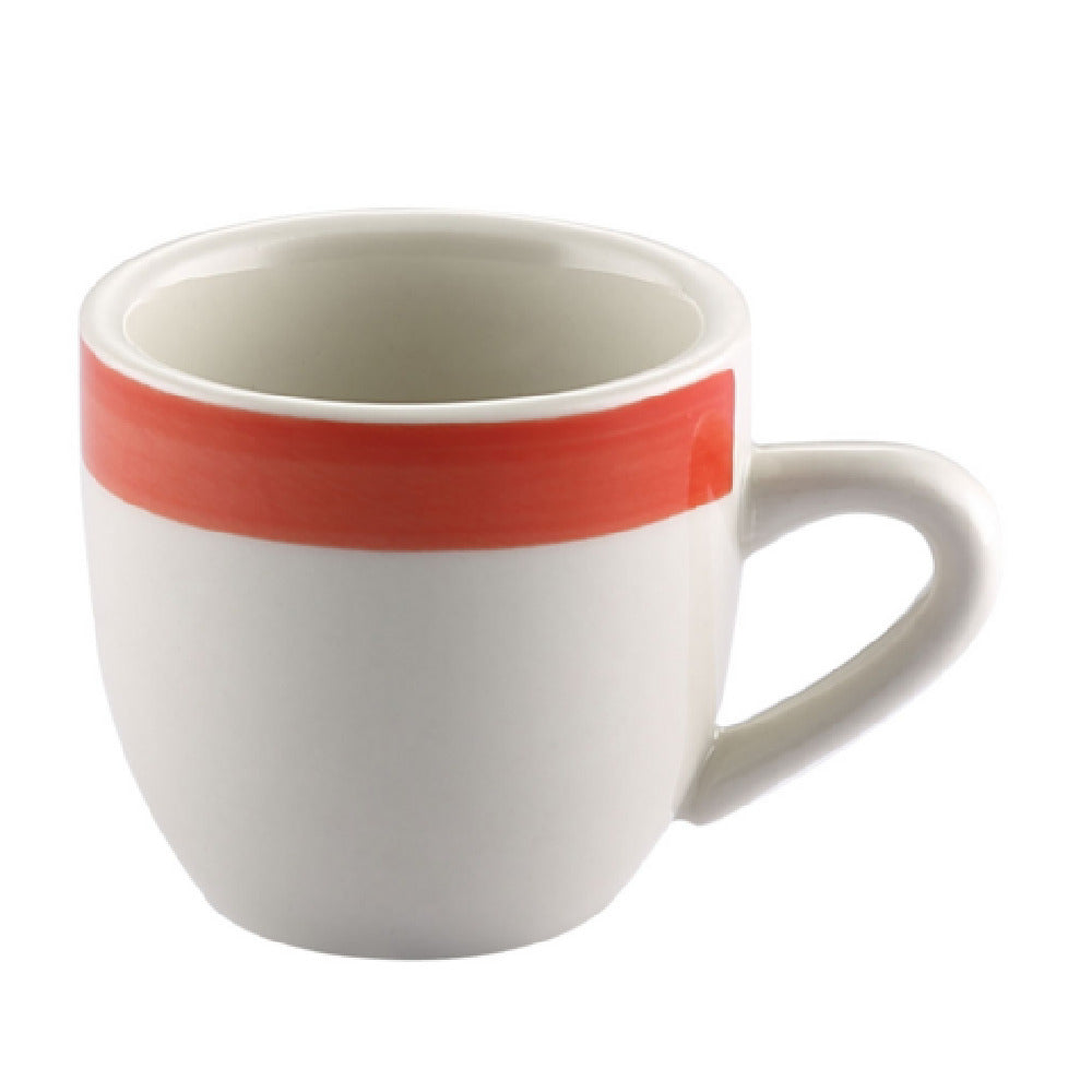 The CAC China R-35-R Rainbow A.D Cup is a meticulously crafted stoneware piece, specifically designed to meet the diverse demands of the food service industry. With a capacity of 3-1/2 ounces and dimensions measuring 2-1/2 inches in diameter and 2-1/2 inches in height, this round cup is optimally sized for serving a variety of beverages. Its construction from high-quality stoneware ensures durability and resilience, making it suitable for frequent use in busy environments. The cup is dishwasher, oven, and microwave safe, offering versatile functionality and ease of use in multiple settings. The distinct red and American White color combination adds a touch of elegance, making it a stylish choice for enhancing table presentations. Sold by case, with each case containing 3 dozen cups, it is an efficient option for establishments requiring bulk quantities, such as restaurants, cafes, and catering services. The CAC China R-35-R Rainbow A.D Cup combines aesthetic appeal with practical design, making it an excellent choice for various market segments within the food service industry seeking reliable and attractive drinkware.
