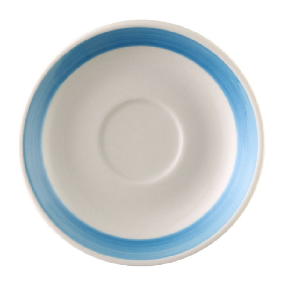 The CAC China R-36-BLU Rainbow Saucer is a meticulously designed round saucer with dimensions of 4-1/2 inches in diameter and 3/4 inches in height, offering a perfect blend of practicality and aesthetics. Crafted from high-quality stoneware (ceramic), this saucer is not only durable but also versatile, making it suitable for various uses across different market segments within the hospitality industry. The blue/American White color of the saucer complements any dining setting, providing a stylish contrast and enhancing the presentation of beverages. The CAC China R-36-BLU Rainbow Saucer is dishwasher, oven, and microwave safe, ensuring easy maintenance and convenient use in fast-paced commercial environments. Packaged as part of the R-35-BLU collection, it is sold by case, with each case containing 3 dozen saucers, making it an economical choice for bulk purchasers such as restaurants, cafes, and catering services. Its robust construction and exceptional safety features make it a reliable option for establishments that require durable tableware to withstand the demands of daily use. The CAC China R-36-BLU Rainbow Saucer stands out as a versatile and functional piece, ideal for enhancing the dining experience in both casual and formal settings.