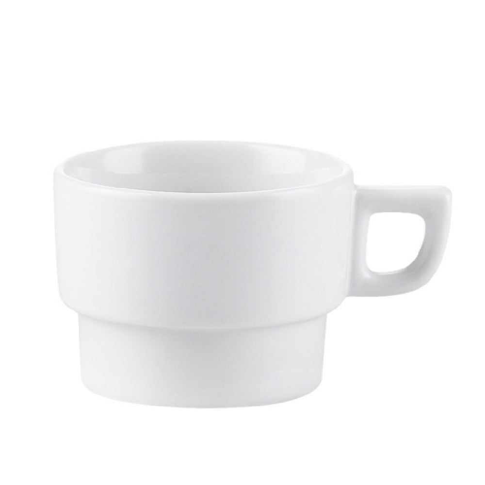 The CAC China RCN-1-F Clinton Frank Cup is a versatile and durable product designed specifically for the foodservice industry. With a capacity of 7 ounces, this round cup features a diameter of 3-1/2 inches and a height of 2-1/2 inches, making it ideal for serving a variety of hot and cold beverages. Crafted from high-quality porcelain, it showcases a Super White finish that enhances its elegant appearance while ensuring the cup's longevity and resistance to wear. The inclusion of a handle adds to its functional design, providing ease of use in busy environments. Its stackable nature optimizes storage space, a significant advantage for restaurants, cafes, and catering services that require efficient organization. Additionally, the cup is dishwasher safe, allowing for easy and convenient cleaning, and is also oven and microwave safe, offering flexibility in food service operations. Sold by the case, with three dozen cups per case, this product is well-suited for large-scale operations. The CAC China RCN-1-F Clinton Frank Cup merges practical design with superior material quality, catering to the demands of professional kitchens and ensuring a reliable solution for beverage service across different segment markets within the industry.