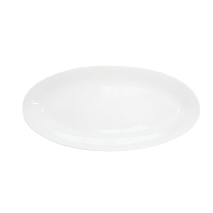 The CAC China RCN-99 RCN Specialty Fishia Platter is a high-quality serving piece designed for professional and home dining experiences, distinguished by its substantial size of 23 inches in length, 10-1/4 inches in width, and 2 inches in height, with a sleek oval shape. Crafted from Super White porcelain, it offers a crisp, clean backdrop for food presentation, enhancing the visual appeal of any dish. The platter is dishwasher, oven, and microwave safe, providing versatility and convenience for a variety of culinary applications. This product is sold by the case, with each case containing four platters, making it a practical choice for restaurants, catering businesses, and large family gatherings. Its durable construction ensures longevity, making it a reliable addition to any kitchen. The CAC China RCN-99 platter serves as an excellent choice for those seeking to combine style and functionality, whether for a bustling restaurant setting or a sophisticated home dining table.