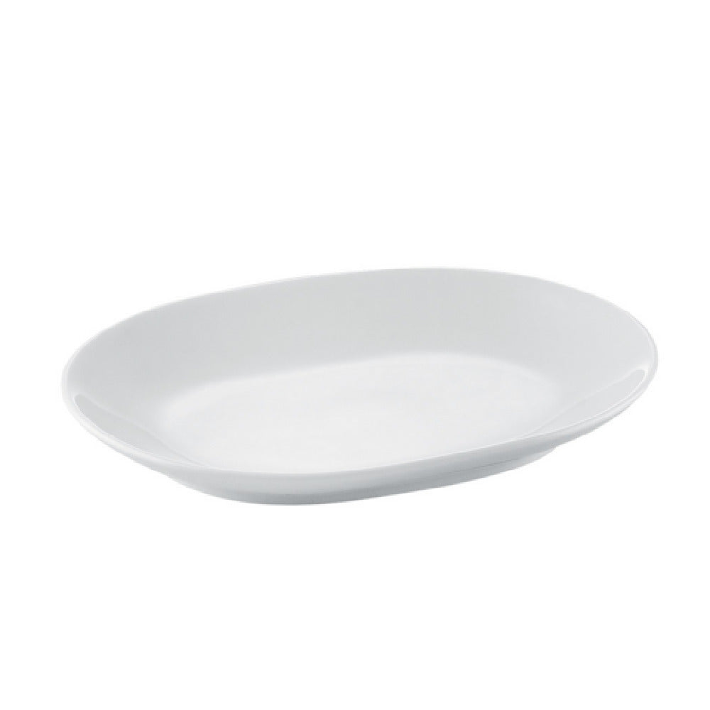 The CAC China RCN-CD13 RCN Specialty D-End Platter stands out with its precise dimensions of 12-1/8 inches in length, 9-1/8 inches in width, and 1-1/2 inches in height. Its oblong shape and coupe design make it a versatile addition to any dining setting, offering a modern aesthetic that complements a variety of culinary presentations. Crafted from high-quality porcelain, this platter features a Super White finish that enhances the visual appeal of the served dishes. Its robust construction ensures durability and resilience in demanding environments. The platter is designed for practicality and convenience, being dishwasher, oven, and microwave safe, which makes it an ideal choice for both professional chefs and home cooks. Sold by the case with a packing configuration of one dozen, it is suited for catering to large-scale events or establishments requiring multiple units. This platter effectively meets the diverse needs of the food service industry, offering exceptional value for restaurants, hotels, and catering businesses seeking stylish yet functional serveware. Its blend of elegant design and practical features ensures it stands out in the market, catering to the needs of those who prioritize both aesthetics and functionality in their service pieces.