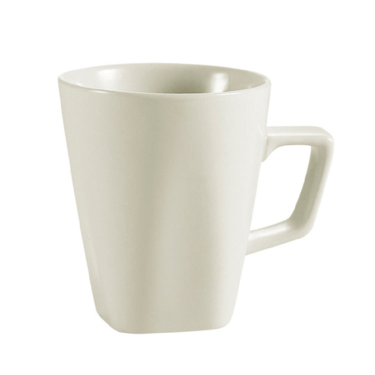 The CAC China RE-1705 RE Mug 5 Oz. 2-3/4"L X 2-3/4"W X 3-1/4"H is a versatile piece of stoneware designed with both functionality and style in mind. This square mug boasts precise dimensions, measuring 2-3/4 inches in length and width, and standing at 3-1/4 inches in height. It has a capacity of 5 ounces, making it perfect for serving a variety of beverages. Crafted from high-quality ceramic, this mug is built to withstand the demands of both commercial and home environments. Its American White color adds a classic touch to any setting, while the square pattern provides a contemporary aesthetic. The RE-1705 mug is dishwasher, oven, and microwave safe, ensuring ease of use and convenience across different settings. This makes it an excellent choice for restaurants, cafes, and caterers looking for reliable and stylish serveware. Sold by the case, with each case packed by 3 dozen, the CAC China RE-1705 mug is a practical investment for establishments requiring consistent quality and durability in bulk quantities. Its robust construction and thoughtful design cater to various market segments, emphasizing its adaptability and appeal in the food service industry.