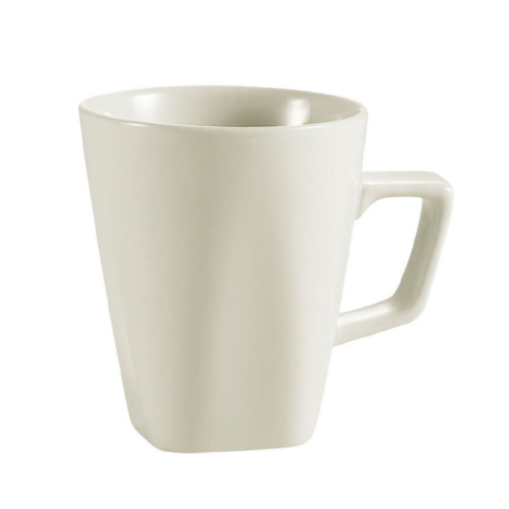 The CAC China RE-1712 RE Mug, with its 12 oz. capacity, is a versatile and durable choice for various market segments in the hospitality and food service industries. Measuring 3-1/2"L x 3-1/2"W x 5-7/8"H, this mug features a unique square design that distinguishes it from traditional round mugs. Crafted from high-quality stoneware, the mug is available in an appealing American White color, adding a touch of elegance to any table setting. Its construction ensures it is dishwasher, oven, and microwave safe, providing convenience and functionality for busy environments. Sold by the case, with each case containing 3 dozen mugs, this product is ideal for businesses seeking reliable and aesthetically pleasing drinkware solutions. The square pattern not only enhances its visual appeal but also offers a modern twist to conventional ceramic mugs. The CAC China RE-1712 RE Mug is a practical and stylish option for restaurants, cafes, hotels, and catering services looking to elevate their beverage presentation while ensuring durability and ease of maintenance.