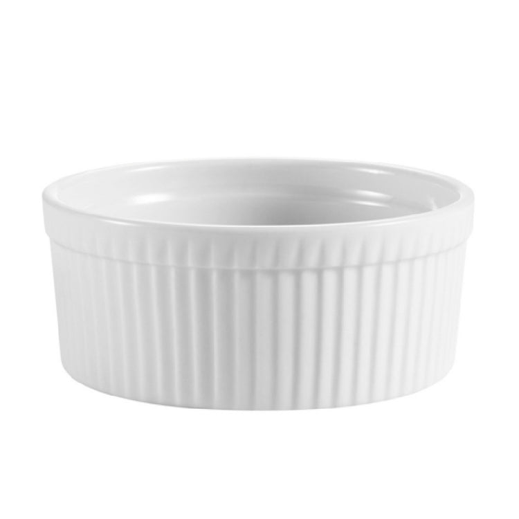The CAC China RKF-10 RKF Ramekin is a versatile kitchen essential that boasts a 10 oz. capacity, making it ideal for a variety of culinary applications. Measuring 4-1/4 inches in diameter and 1-3/4 inches in height, this ramekin features a classic round, fluted design that complements both modern and traditional table settings. Crafted from high-quality porcelain in a striking Super White finish, it offers a durable and aesthetically pleasing option for both professional chefs and home cooks. The RKF Ramekin is dishwasher, oven, and microwave safe, ensuring convenience and versatility in any kitchen environment. Sold by case and packed by 2 dozen per case, this product is perfect for restaurants, catering services, and other food service establishments looking to enhance their tableware collection with reliable and stylish options. Its robust construction and elegant design make it a valuable asset for serving a variety of dishes, from soufflés to desserts, elevating the dining experience across different segment markets within the industry.