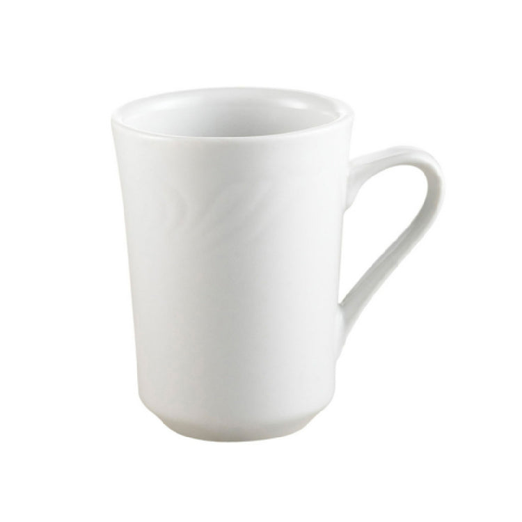 CAC China, RSV-17, Roosevelt Mug, 8 oz., 3-1/8" dia. x 4"H, round, tall, embossed, dishwasher, oven and microwave safe, porcelain, Super White (Sold by case) (Packed By: 3 Dozen Per Case)