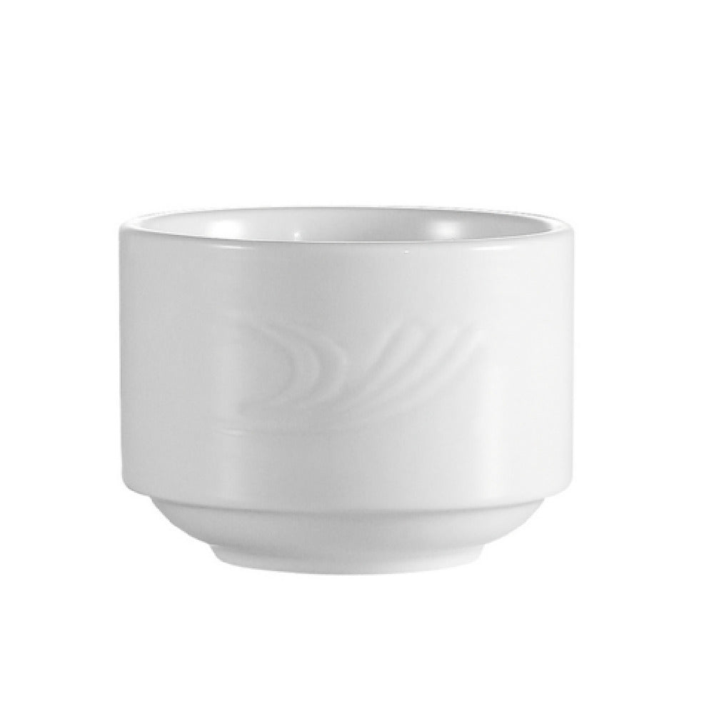 The CAC China RSV-4 Roosevelt Bouillon Cup is a versatile and elegant dining solution designed for diverse culinary environments, with a capacity of 7-1/2 oz. and dimensions of 3-3/8" diameter by 2-1/2" height. Crafted from porcelain, this cup is distinguished by its Super White finish, providing a clean and sophisticated look that complements any table setting. The embossed design adds a touch of sophistication, while the round shape ensures practicality and ease of use. This bouillon cup is dishwasher, oven, and microwave safe, offering flexibility and convenience for busy kitchens. Its stacking feature allows for efficient storage, maximizing space in commercial settings. Sold by case and packed by 3 dozen per case, the CAC China RSV-4 is ideal for restaurants, catering services, and hospitality venues seeking reliable and stylish tableware. This product's durability and aesthetic appeal make it a valuable asset for establishments aiming to deliver an exceptional dining experience.